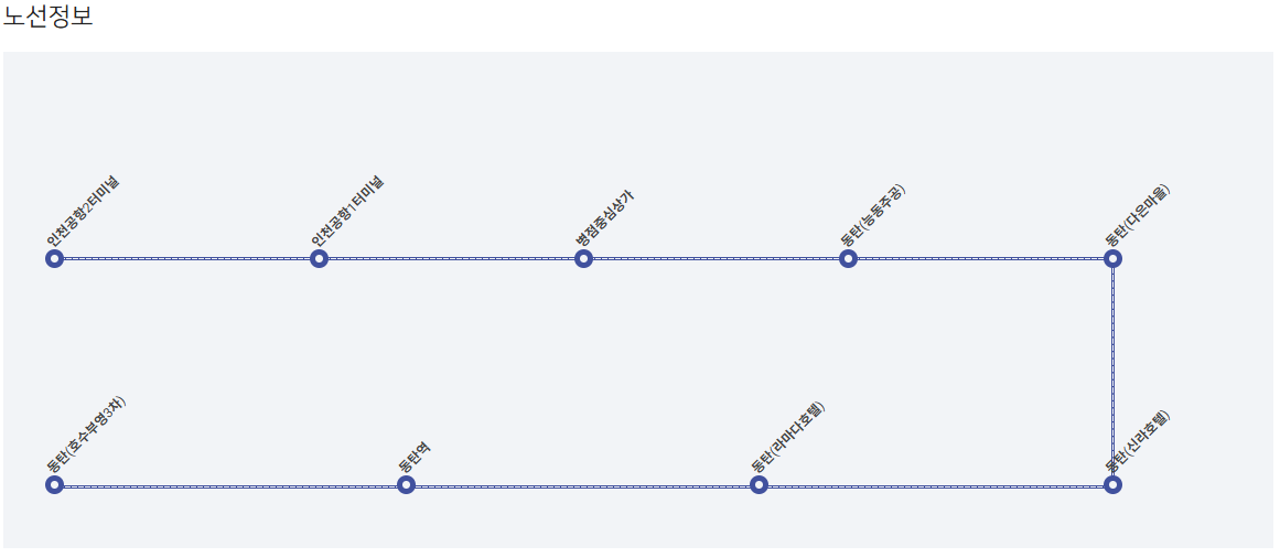 리무진버스는 동탄역을 시작으로 라마다호텔, 화성 미디어 센터, 다은마을, 능동 주공 단지, 병점 중심상가 등을 경유합니다. 각 정류소에서 승차가 가능하며, 인천공항에 도착하기 전 다양한 지역에서 탑승할 수 있는 장점이 있습니다. 아래의 이미지는 동탄에서 인천공항으로 가는 리무진버스의 노선도를 보여줍니다.