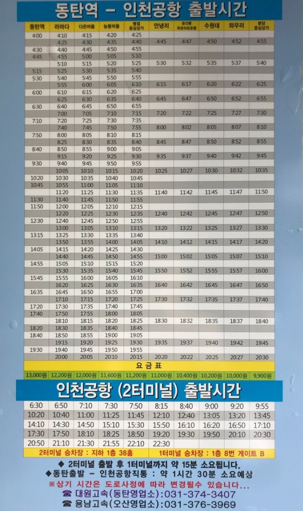 동탄 인천공항 리무진버스 시간표