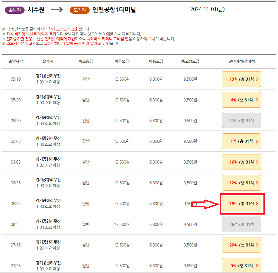 📌 인천공항 리무진버스 예매 시 주의사항